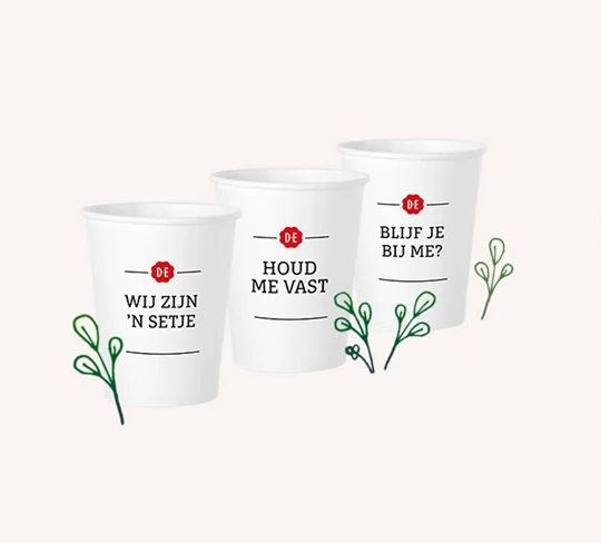 Onze koffiebekers worden gemaakt van papier met FSC-keurmerk. Dit geeft aan dat de grondstof van de bekers uit verantwoord bosbeheer komt; het leefgebied van planten en dieren wordt behouden en de rechten van de lokale bevolking en bosarbeiders gerespecteerd.