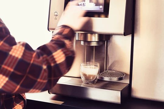 Tot een paar jaar geleden hadden we een koffiemachine met koffie-extract in onze kantine staan. Prima koffie, maar op een gegeven moment wilden we een kwaliteitsstap maken op koffiegebied. Collega's bleken elke keer weer naar ons kleine bezoekkeukentje te gaan, want daar stond een instant machine. Toen gasten ons ook steeds vaker vroegen om cappuccino's en andere koffievarianten, besloten we op zoek te gaan naar iets anders. Eerst probeerden we een instant machine met melkpoeder: een enorme verbetering, maar nog steeds niet wat we zochten. Toen heeft Jacobs Douwe Egberts Professional ons geholpen aan onze huidige machine: de Barista ONE, met verse bonen én echte melk.