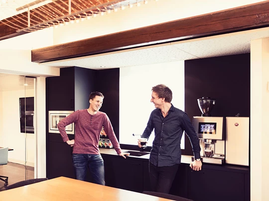 Eigenlijk hoort koffie van deze kwaliteit ook bij ons bedrijf en de gastvrijheid die we willen uitstralen. We hebben zo'n mooi kantoor, krijgen vaak opdrachtgevers over de vloer. Dan móet je koffie en thee van de bovenste plank schenken. Helemaal omdat bijna iedereen thuis goede cappuccino's kan zetten tegenwoordig. Bovendien: we werken hier allemaal keihard. Collega's voelen zich dan extra gewaardeerd als wij zorgen dat ze heerlijke koffie hebben.