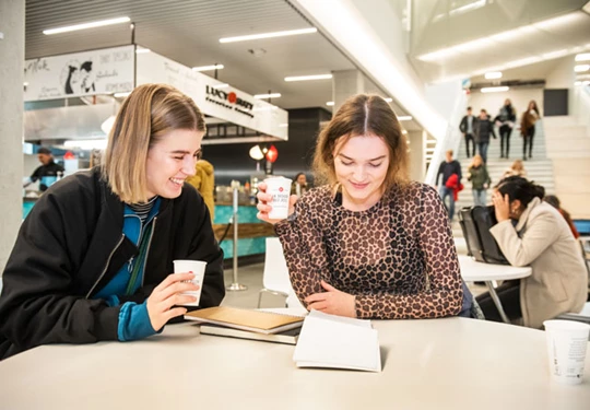”Iedereen, zowel medewerkers als studenten, vond de beker meteen leuk. Omdat je er afval mee bespaart en ze recyclebaar zijn, maar ook vanwege de teksten als: ‘Houd me vast’, ‘Wij zijn een setje’ en ‘Blijf bij me’. Dat maakt de herbruikbare beker grappig.”