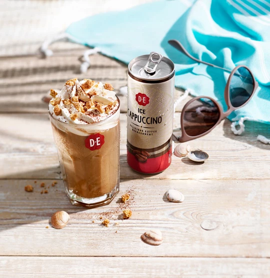 Schenk het blikje ijskoude Douwe Egberts Ice Cappuccino.