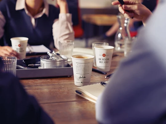 "71% van de werknemers wil hun koffiebeker hergebruiken om op deze manier een bijdrage te leveren aan het milieu.”