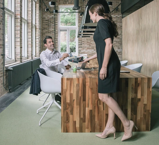 Verder is het een kwestie van de bedrijfscultuur aanpassen om mensen vaker uit de stoel te krijgen. Als iedereen de hele dag zit, is de drempel immers hoog om als eerste en enige aan een zit/stabureau te werken. “Mensen zijn nu eenmaal kuddedieren en zullen niet snel als eerste de dam oversteken. Wil je een gezonder bedrijf, dan moet je werknemers een handje helpen,” zegt Dirk Schaars. Werknemers staand laten vergaderen, lunchwandelingen aanbieden – compleet met lunchbox en een route van 15 of 30 minuten - of een tafeltennistafel neerzetten, helpt enorm. “Zo wordt bewegen normaler en gaan ook de mensen die er geen affiniteit mee hebben, er eerder in mee,” zegt Schaars. Lees meer over onze koffieapparaten voor op kantoor.