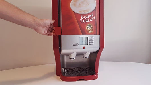 Sluit de deur. De koelkastdeur zit goed dicht als je een klik hoort. Druk daarna op de aan/uit-schakelaar. Zodra het water is opgewarmd, kun je weer koffie zetten.