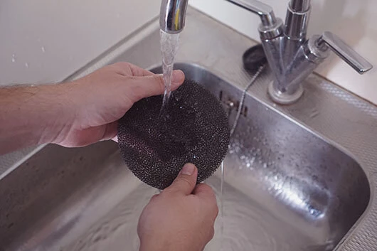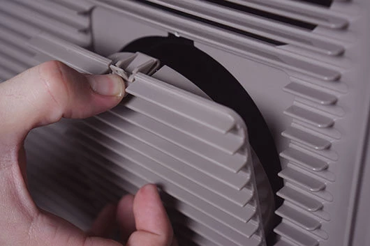 Spoel de filter af onder de kraan en droog deze goed. Droog de filter met een schone, droge doek. Een papieren doek kan papierresten achterlaten, deze zijn lastig te verwijderen. Als er op het rooster ook stof zit, kun je hetzelfde doen met het rooster.