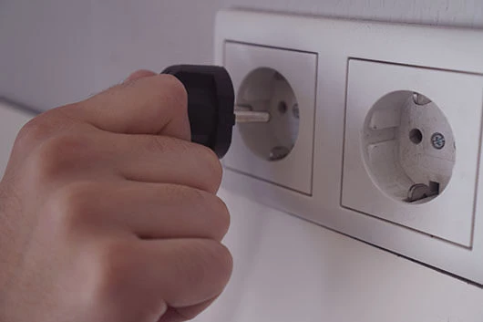 Doe de stekker in het stopcontact. De Cafitesse Excellence Compact start nu opnieuw op.