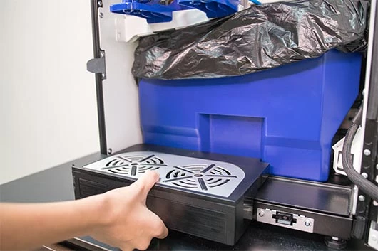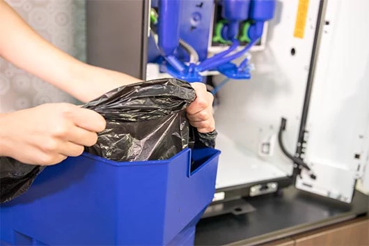 Gooi de gebruikte vuilniszak weg en maak de opvangbak en de bodemplaat schoon met een vochtige doek.