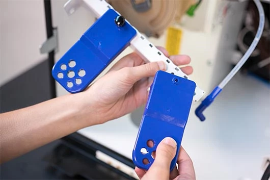 Spoel alle onderdelen af (ook alle niet-blauwe onderdelen) onder de koude kraan. Met het bijgeleverde ragertje kun je de kleinste onderdelen schoonmaken. Droog nu alle onderdelen goed.