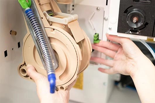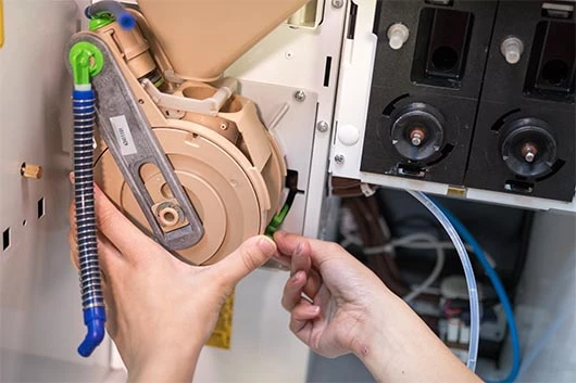 De mixervinnen en de afzuighuisjes kun je eenvoudig verwijderen uit de koffiemachine. Trek met beleid aan de mixervinnen. De afzuighuisjes kun je er met jouw vinger uitschuiven.