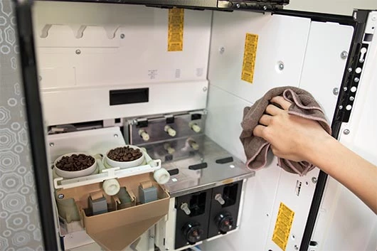 Maak de binnenkant van de koffiemachine schoon met een vochtige doek.