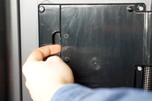 Met de bijgeleverde sleutel kun je de machinedeur vanaf de rechterkant openen.
