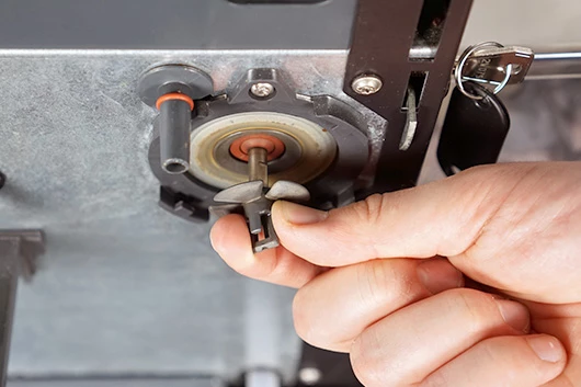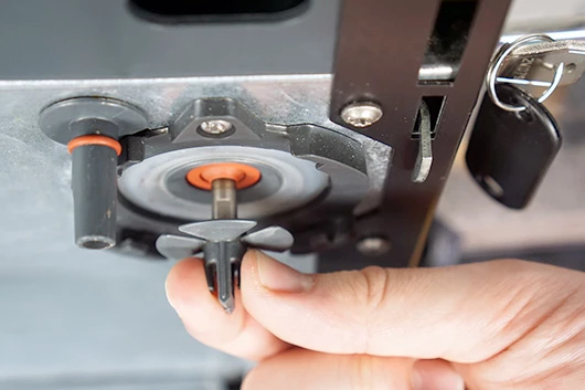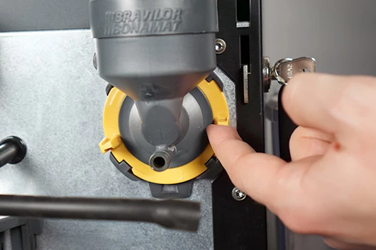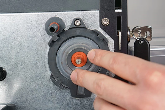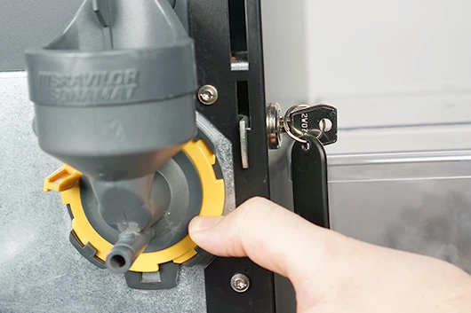 Met de bijgeleverde sleutel kun je de deur vanaf de rechterkant openen. Zo maak je de deksel en ingrediënten vrij.