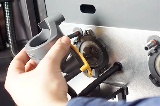 Als je de koffiemachine heeft schoongemaakt, kun je deze ook nog even spoelen. Zo blijven de uitgifteslangen in optimale conditie.