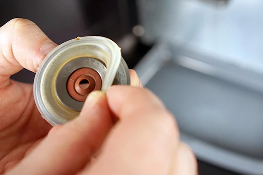 De rubberen ringen kun je nu als geheel terug in de koffiemachine plaatsen.