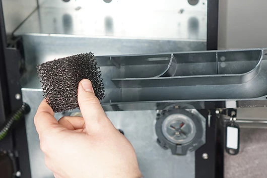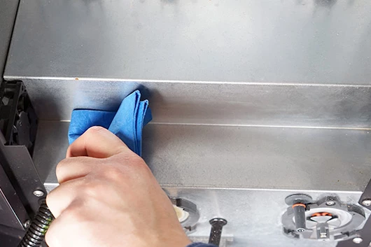 Met een schone vochtige doek kun je nu de binnenkant van de koffiemachine afnemen.