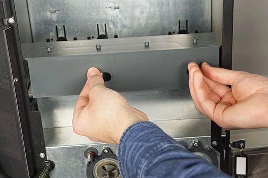 De uitgiftetuiten kun je nu weer op de container zetten. Let erop dat de inkepingen precies over de uitstulpingen vallen. Draai de uitgiftetuiten vast.