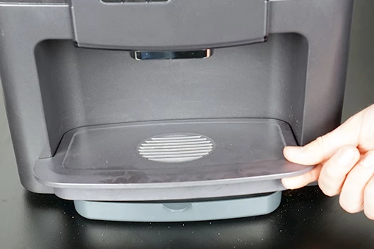 De lekbak schuif je eenvoudig terug in de koffiemachine.
