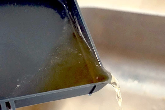 Gooi de inhoud van de lekbak weg.