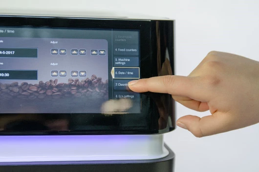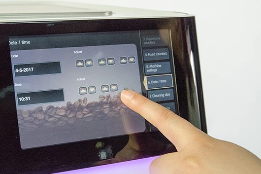 Aan de rechterkant van jouw koffiemachine zit een USB-poort. Plaats hierin de USB-sleutel van uw Promesso.