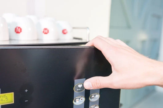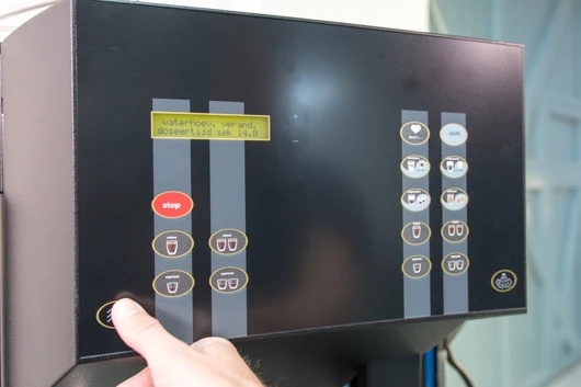 Gebruik de toetsen ‘+’ en ‘-‘ om de hoeveelheid water te verhogen of verlagen. Je selecteert het aantal seconden dat jouw koffiemachine water geeft.