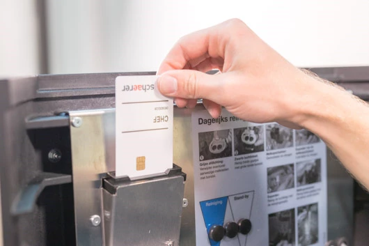 De hoeveelheid heet water voor thee kun je eenvoudig instellen op jouw Schaerer 500. Hiervoor heb je wel de chefkaart nodig.